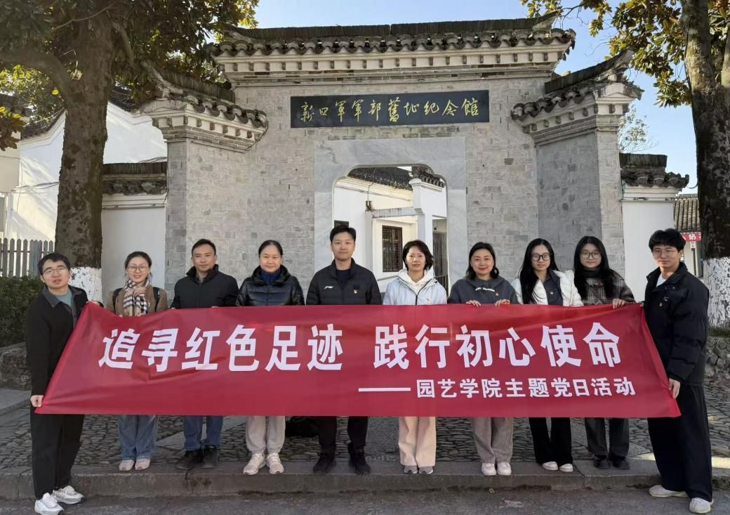 近日,园艺学院党委组织党员代表前往安徽宣城,开展“追寻红色足迹,践行初心使命”主题党日活动,通过实地研学深化党史学习教育成效,探索党建引领学科发展和社会服务工作的实践路径,强化学院党员的初心使命与责任担当。