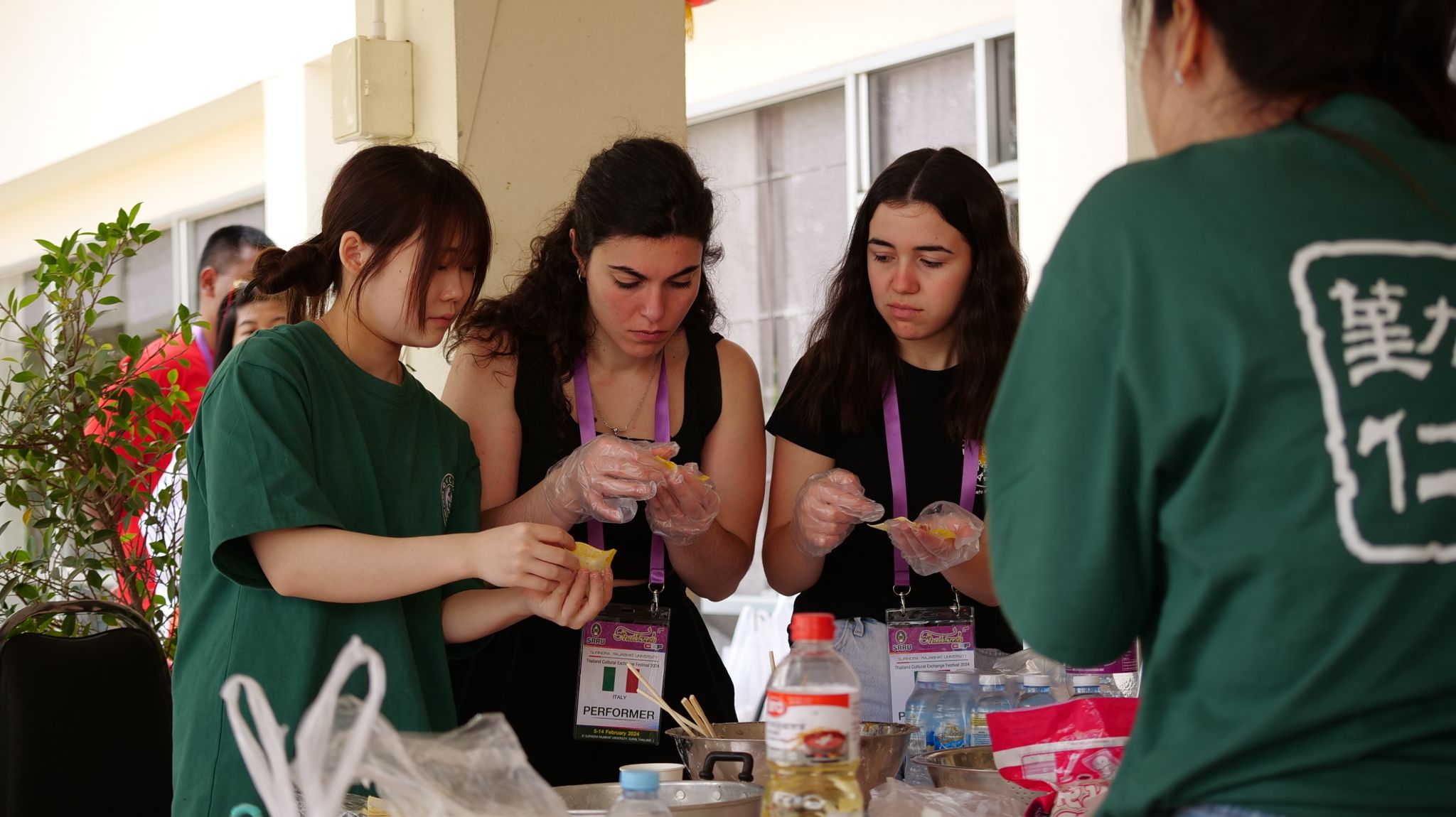 春节期间,参加文化交流活动的南农师生们还策划开展了以“YUE跃·山海”为主题的中国文化推介活动,现场师生一起包饺子、剪纸、写福字,参加交流活动的国际青年学生跃跃欲试、现场拜师,学起了中国功夫和舞狮表演。
