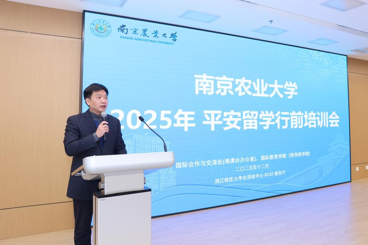 12月17日,ios版雷竞技官网2025年“平安留学”行前培训会在滨江校区大学生活动中心B110报告厅召开。学校党委副书记、纪委书记吴荣顺出席并作主题报告。南京市公安局境外非政府组织管理办公室二级警长杨熠宇、全美国际区域经理闪婷婷、动物科技学院副教授孙晓个分别做交流分享。140余名即将出国(境)师生、各二级学院党委负责人及外事秘书参会。本次培训会由教育部国际合作与交流司指导、教育部留学服务中心主办、ios版雷竞技官网承办,旨在切实落实教育部“平安留学、健康留学、文明留学、成功留学”工作理念,为即将赴海外求学访学的师生保驾护航。