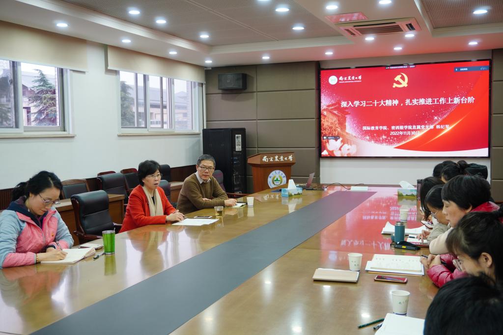 11月30日下午,国际教育学院、密西根学院直属党支部在行政北楼D414会议室开展深入学习贯彻党的二十大精神专题党课学习活动。全体教师党员与部分学生党员代表参加学习,本次专题党课学习活动由直属党支部副书记童敏主持。 直...