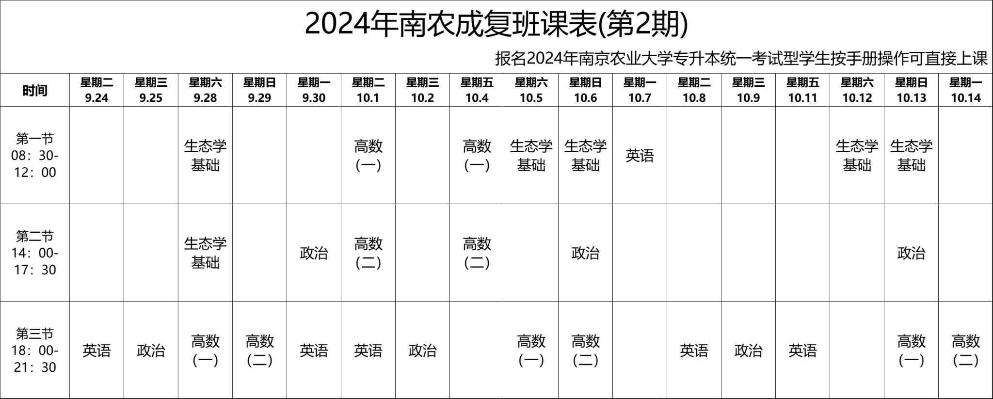 1.开设科目(专科起点本科):政治、高等数学(一)、高等数学(二)、英语、生态学基础等考试科目。