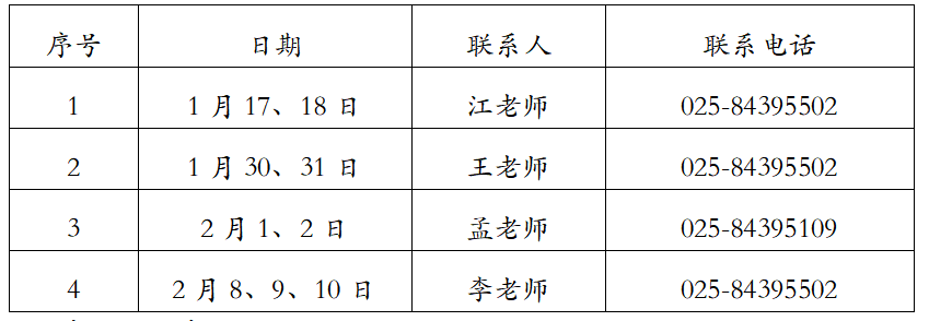 学校于1月12日—2月10日放寒假,寒假期间实行值班制,请应征入伍学生携带符合要求的政审材料按以下时间集中办理政审及材料盖章。