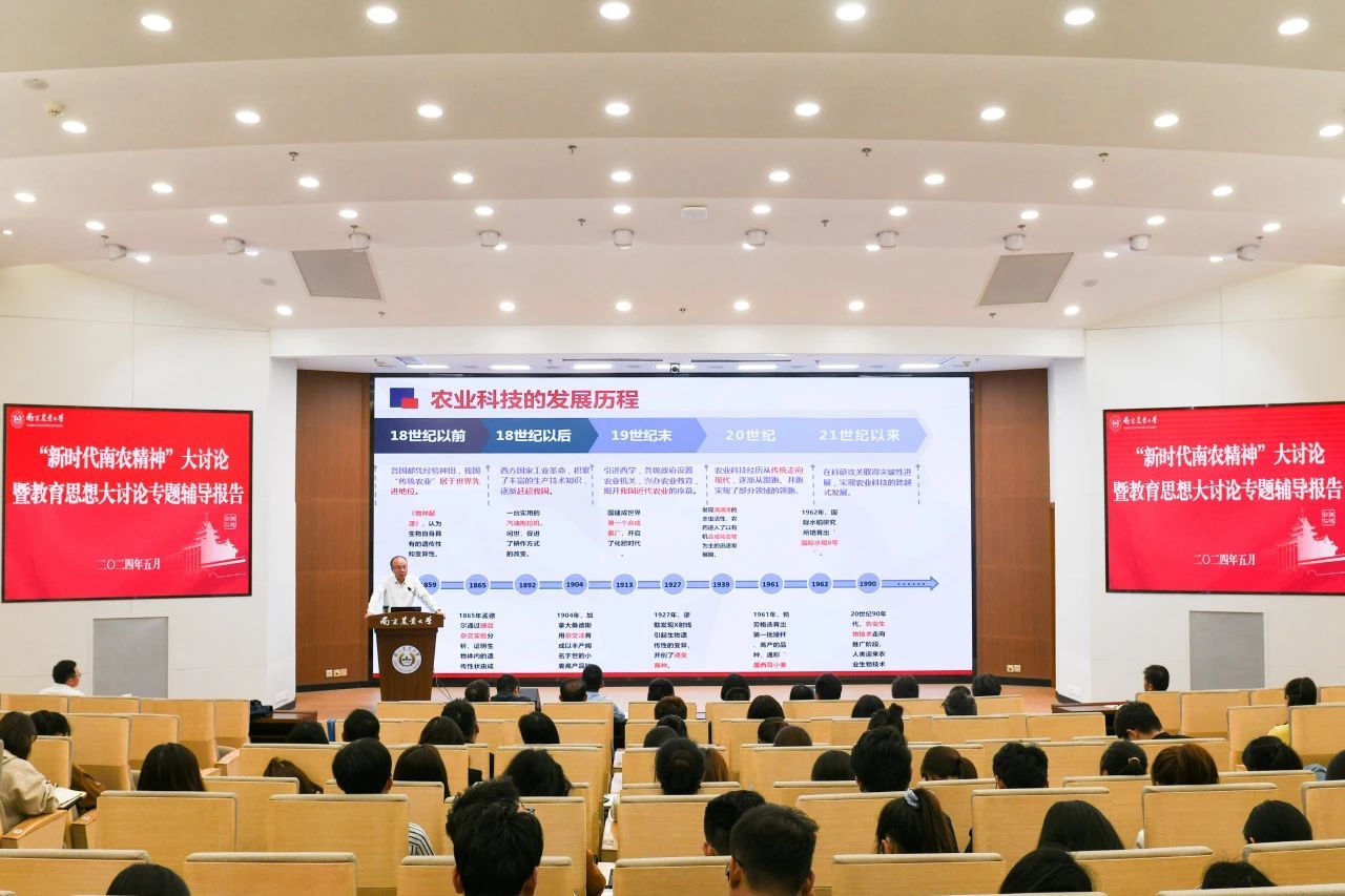 为进一步落实学校关于“新时代南农精神”大讨论和教育思想大讨论的相关要求,聚焦“强国建设、教育何为,农业强国、南农何为”时代命题,带领全体学工人员深入了解学校百廿奋进历程,感悟办学精神,更新教育观念,以高质量学生工作助力学校“双一流”建设。5月7日,我校学工系统“隽拔讲坛”在图书馆学术报告厅组织了“新时代南农精神”大讨论暨教育思想大讨论专题辅导报告。