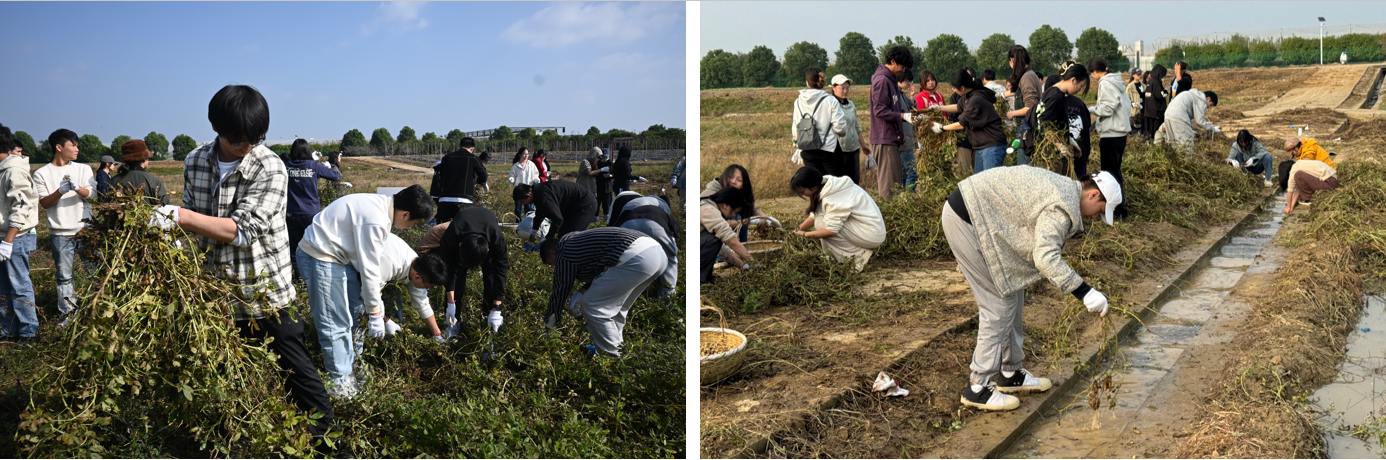 农田劳动实践项目主要是清理一枝黄花、收获花生与牧草种植。草业学院与植物保护学院的老师为大家讲解了清理一枝黄花、收获花生与牧草撒种的技巧与手法。在习得“真经”后,同学们都有模有样地忙碌起来。