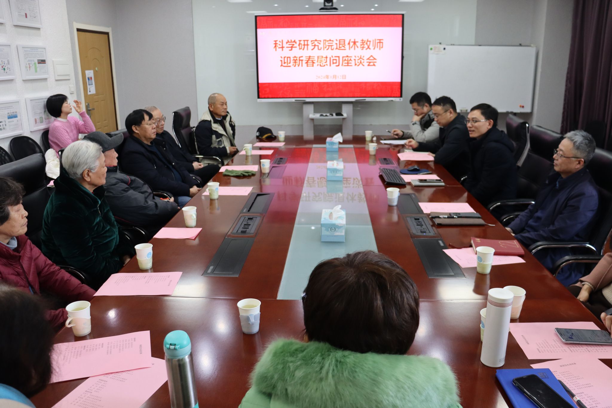 1月12日上午,科学研究院组织召开退休教师迎新春慰问座谈会,9位在宁退休教师,科研院在宁领导班子成员、各相关办公室教师代表等齐聚一堂,共话科管情长,共谋科技发展。座谈会由科研院院长周国栋主持。