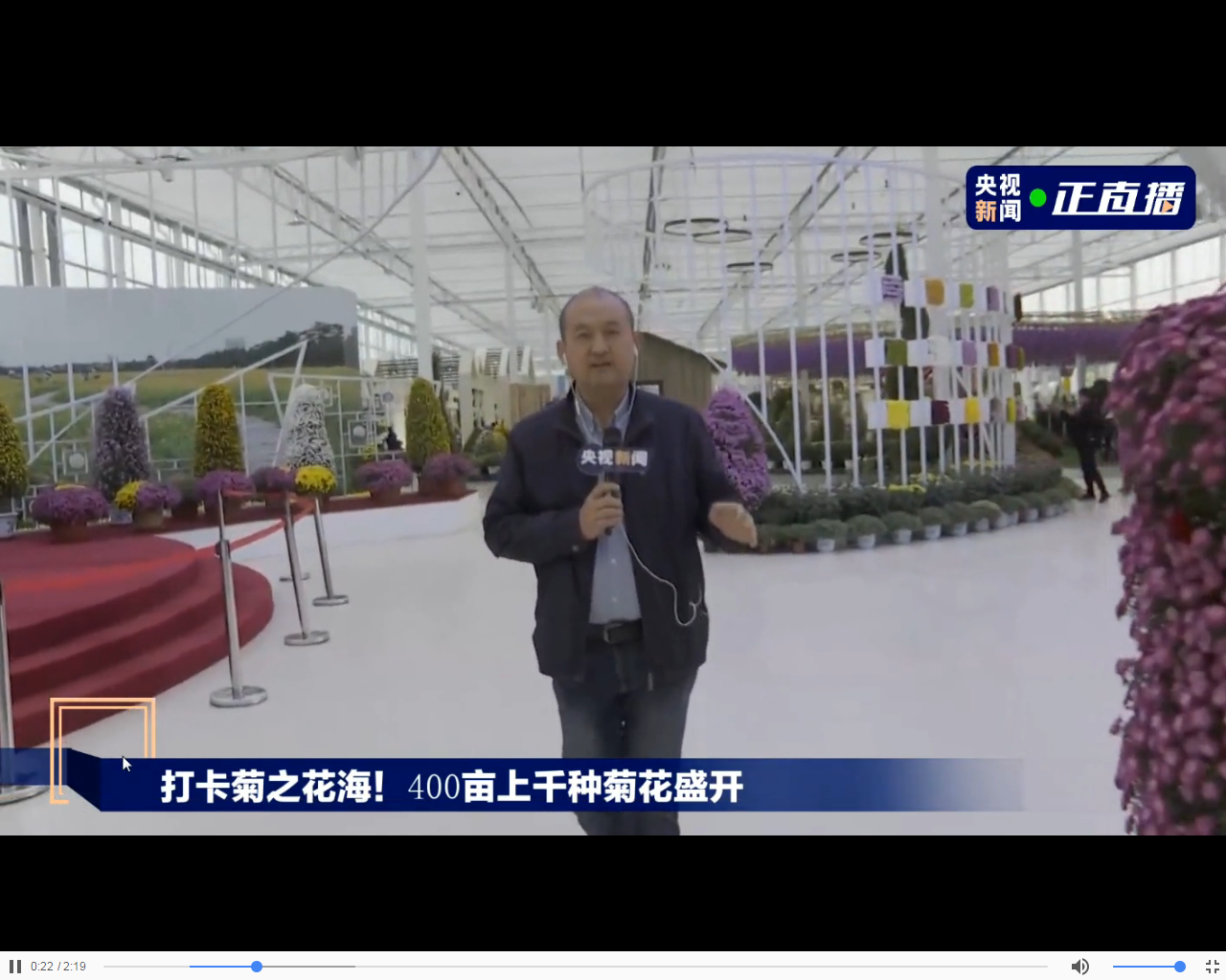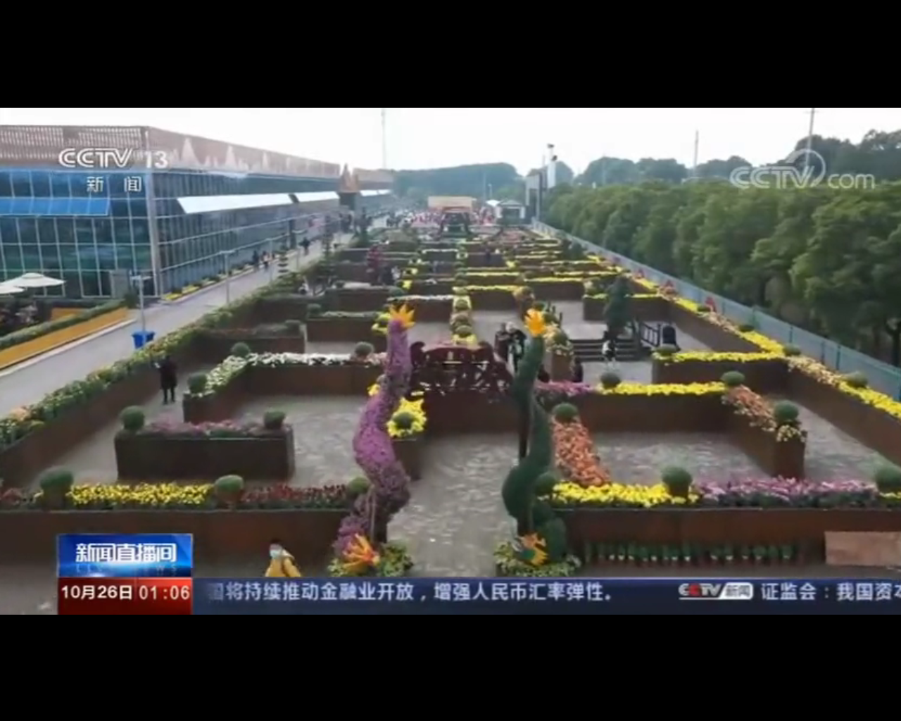 10月26日中央电视台CCTV-4 中文国际频道、CCTV-13 新闻频道及10月21日央视新闻网络直播分别报道了湖熟菊花研发展示基地菊花展的盛况, 1600多个菊花品种在400亩展示基地悄然绽放,吸引了各地的行业人士及市民的观摩、游览。基地目前已建成世界上最大的菊花基因库,保存了5000多份菊花资源、3000多个品种,基地自2012年建成运行以来,当地政府依托团队在菊花种质资源搜集、保存和新品种选育及菊花产业技术开发领域的优势已成功联续举办了八届菊展。湖熟菊花展的知名度、影响力逐渐扩大,已经成为江苏乃至全国花卉一二三产融合的一张金名片。在2019年第七届湖熟菊花展一个月期间,接待游客60万人次,共带动当地旅游、餐饮、零售、民宿等“菊花经济”达8000万元。当地政府预计,今年的一朵菊花综合带动的“菊花经济”在疫情之后依然呈逆势而上的趋势。