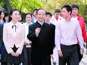 “明天是‘五四’青年节。我们纪念‘五四’,还是要继承和发扬‘五四’运动爱国、进步、民主、科学的精神。青年是祖国的未来,是民族的希望,建设国家的重任迟早要交给你们,希望你们立志成才,在各行各业发挥突击队作用,为国家各项事业带来朝气。”温家宝简短的开场白,使青年们感到十分亲切。