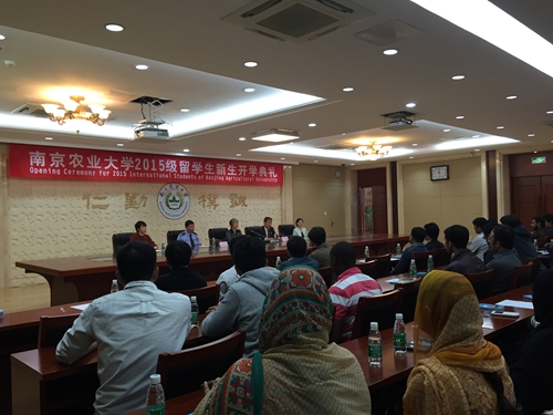 10月14日,ios版雷竞技官网2015级来华留学生新生开学典礼在金陵研究院二楼会议室举行。我校副校长徐翔教授、国际教育学院院长刘志民教授,南京市公安局出入境管理处胡超英警官,我校教务处副处长胡燕等出席典礼。国际教育学院工作人员、留学生会骨干成员、老生代表和留学生新生140多人参加典礼。开学典礼由院长刘志民主持。