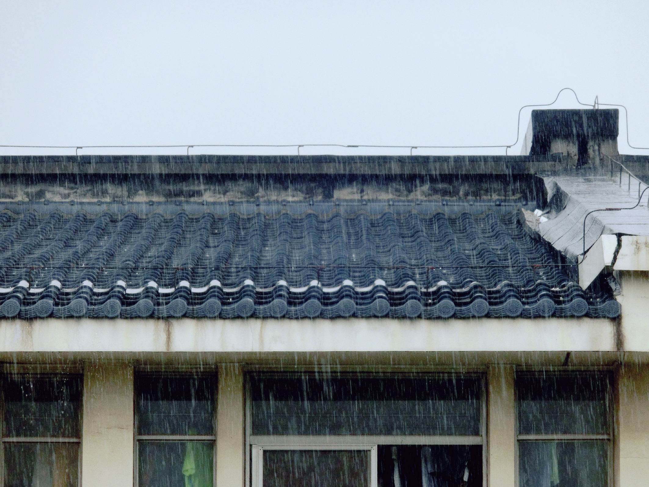 青瓦白墙,是南方的浪漫。淅淅沥沥的雨丝为校园蒙上了一层温柔的韵味,墨蓝色的屋顶厚重而沉稳,在灰蓝色天空的映衬下,宁静沉稳,给每一颗躁动的心几许安定的力量。