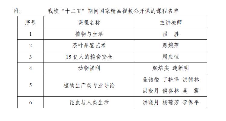 日前,教育部下发了《教育部办公厅关于公布第八批“精品视频公开课”名单的通知》(教高厅函[2016]15号),授予我校《昆虫与人类生活》课程“国家精品视频公开课”称号。