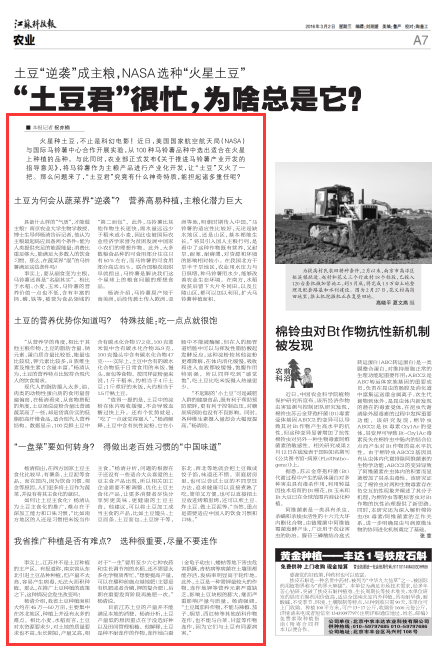 火星种土豆,不止是科幻电影!近日,美国国家航空航天局(NASA)与国际马铃薯中心合作开展实验,从100种马铃薯品种中选出适合在火星上种植的品种。与此同时,农业部正式发布《关于推进马铃薯产业开发的指导意见》,将马铃薯作为主粮产品进行产业化开发,让“土豆”又火了一把。那么问题来了,“土豆君”究竟有什么神奇特质,能担起诸多重任呢?