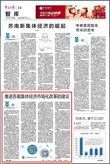 苏南农村集体经济是在市场经济大背景下发展壮大的。面临当前诸多挑战,必须继续以开放、多元和市场化的思路创新组织形式,健全机制并规范管理,实施资源资产化、资产(资金)资本化、资本股份化、股份市场化。
