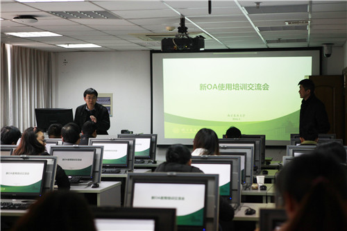 3月10日,学校在图书馆六楼培训室召开了两场新办公自动化系统(OA)的培训交流会,各行政部门、学院及直属单位的OA秘书参加了培训。图书与信息中心主任倪峰、图书馆党总支书记查贵庭、校长办公室副主任刘勇等参加了交流。