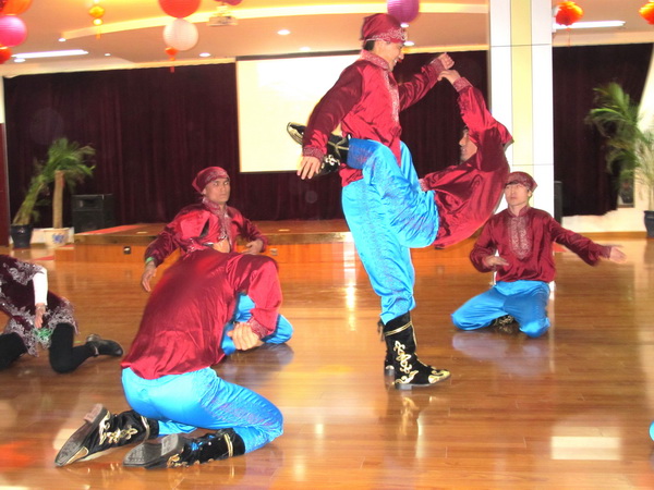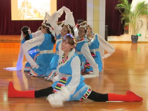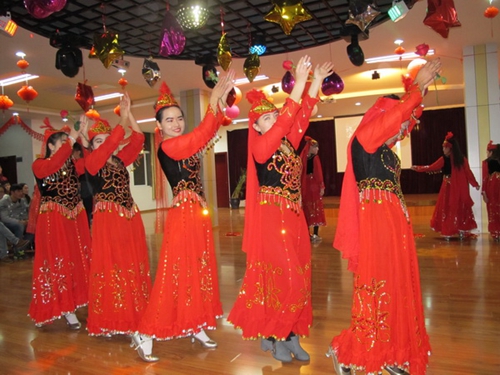 在晚会上,首先由各民族同学穿着具有民族特色的鲜艳服装进行了走秀,接着各民族的同学以自己优美的舞姿展示了各民族的特色舞蹈,演唱了富有民族特色的歌曲。节目一个比一个精彩,观众的掌声笑声满屋飞扬。精彩演出结束以后,各民族同学及观众一起载歌载舞,晚会的欢乐气氛达到了高潮。