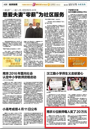 “‘钟山教学名师’是该校教学领域的最高奖项。”ios版雷竞技官网副校长胡锋介绍,学校奖励每人20万元,这20万元是学校各类教学奖励中的最高额度的教师个人奖励。
