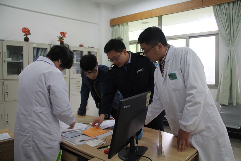 检查组重点检查了医院疫苗规范化管理工作,对人员资质、疫苗公示、接种告知以及二类疫苗的购进、分发、供应、使用登记等情况进行逐一检查,对校医院能够认真贯彻执行疫苗管理制度、确保疫苗接种安全表示肯定;根据春季传染病流行特点,对我院开设的肠道门诊专科进行实地查看,对科室内规定标识张贴和各项消毒设备使用运行情况进行检查。校医院在门诊人手紧的情况下,坚持按规定开设肠道门诊,对肠道传染病实时监控,确保师生安全。在放射科,检查组一行对校医院新增添的DR设备的使用管理进行指导,对放射科工作人员资质、年度培训情况进行详细询问与检查,肯定了校医院在放射科管理中从硬件条件的改善到软件环境的提升。