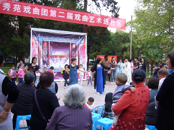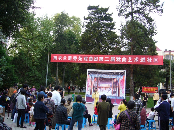 4月13日下午,南农大社区邀请我校大学生兰菊秀苑戏曲团在社区广场为居民表演戏曲节目。众多居民观看了表演。
