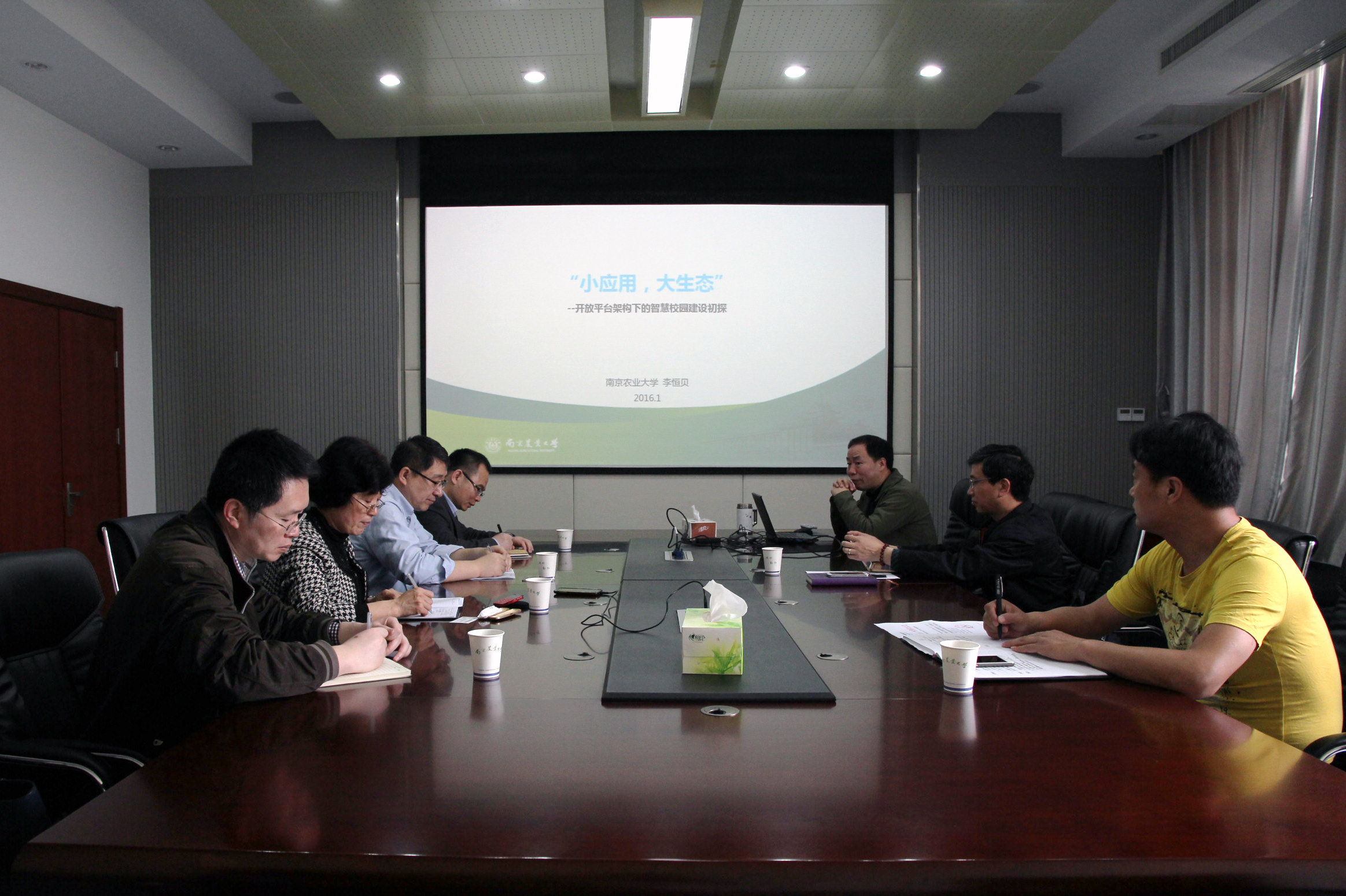 交流会上,倪峰对李力一行的到来表示欢迎,并向来访人员介绍了我校信息化建设的基本情况。李恒贝详细介绍了我校校园信息化建设过程、遇到的问题等,重点介绍了师生综合管理与服务平台以及数据中心的建设,以及“小应用”+“大生态”的建设理念,并对我校新建的师生综合管理与服务平台进行了展示。双方还就我校信息化建设过程中遇到的困惑和问题进行了沟通与交流。