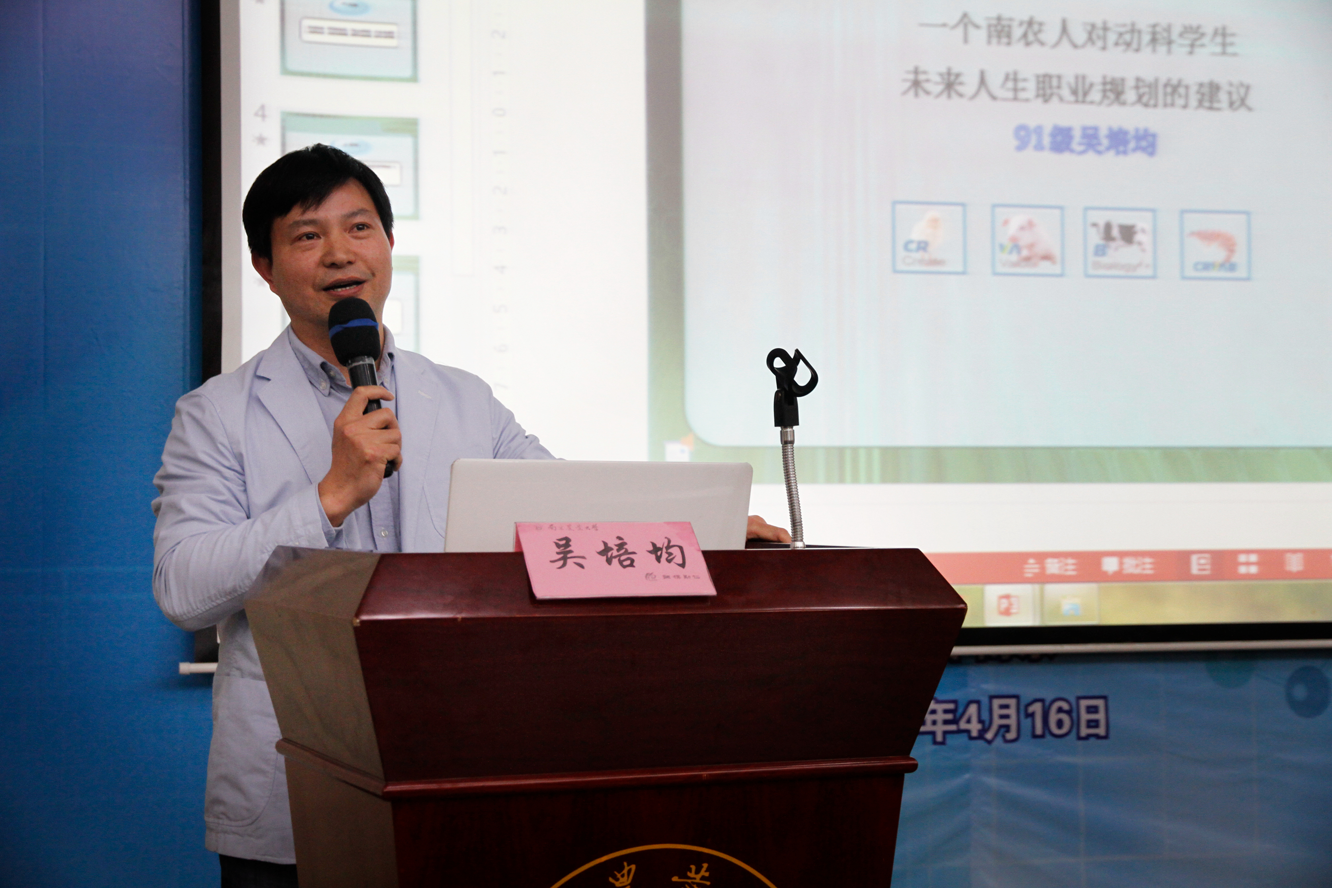 4月20日下午,由发展委员会办公室主办、动物科技学院承办的ios版雷竞技官网第八期校友论坛在图书馆报告厅举行。北京科为博生物集团董事长吴培均受邀为南农学子作题为《我们如何选择未来的职业道路》的报告。发展委员会办公室以及动物科技学院(以下简称动科院)220余名师生聆听了此次报告。