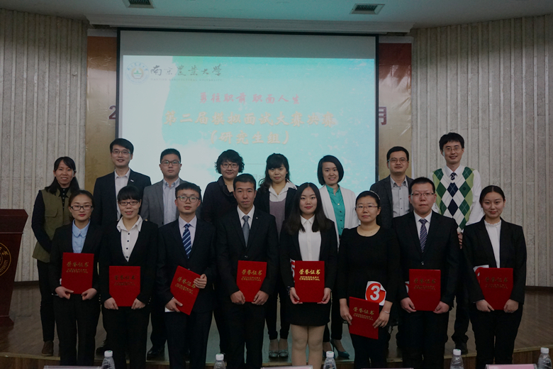 4月28日,我校第二届“勇往职前 职面人生”模拟面试大赛决赛(研究生组)在图书馆报告厅举行。学生工作处副处长吴彦宁、园艺学院党委副书记韩键、校就业指导中心教师、部分学院辅导员以及全校200余名研究生同学观摩了比赛。决赛邀请了麦德龙南京雨花区商场人事部经理顾妍、中兴软创人力资源部经理周伟健、南京金斯瑞生物科技有限公司人力资源部招聘经理陈潜、苏宁云商集团股份有限公司校园招聘部经理林勃、中华英才网校园渠道部经理戎慧等企业招聘高管担任评委。