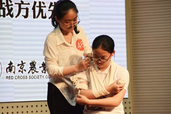 比赛结束后,我校红十字会急救队的队员为大家展示了精湛的急救技术,并表演了大合唱等高水平节目。