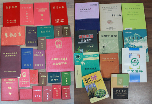 5月9日上午,植物保护学院王荫长教授向档案馆捐赠了个人档案资料,包括图书资料11本,各类证书、聘书54件,论文书信等9份。档案馆馆长景桂英向王教授表示感谢,并颁发了捐赠证书。