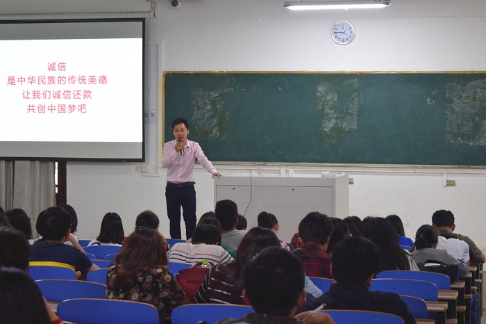 今年,为使学生能直观地了解何时还贷及如何还贷,我校除继续制作倡导诚信还款的宣传视频外,还在全校组织开展“青春,与诚信同行”资助诚信教育系列主题活动,如诚信主题报告会、诚信主题感言征集等,通过丰富多彩的活动吸引学生自觉主动参与,同时加强国家助学贷款及其他资助政策的宣传,普及征信和金融知识,倡导契约精神,促进学生树立诚信观念。