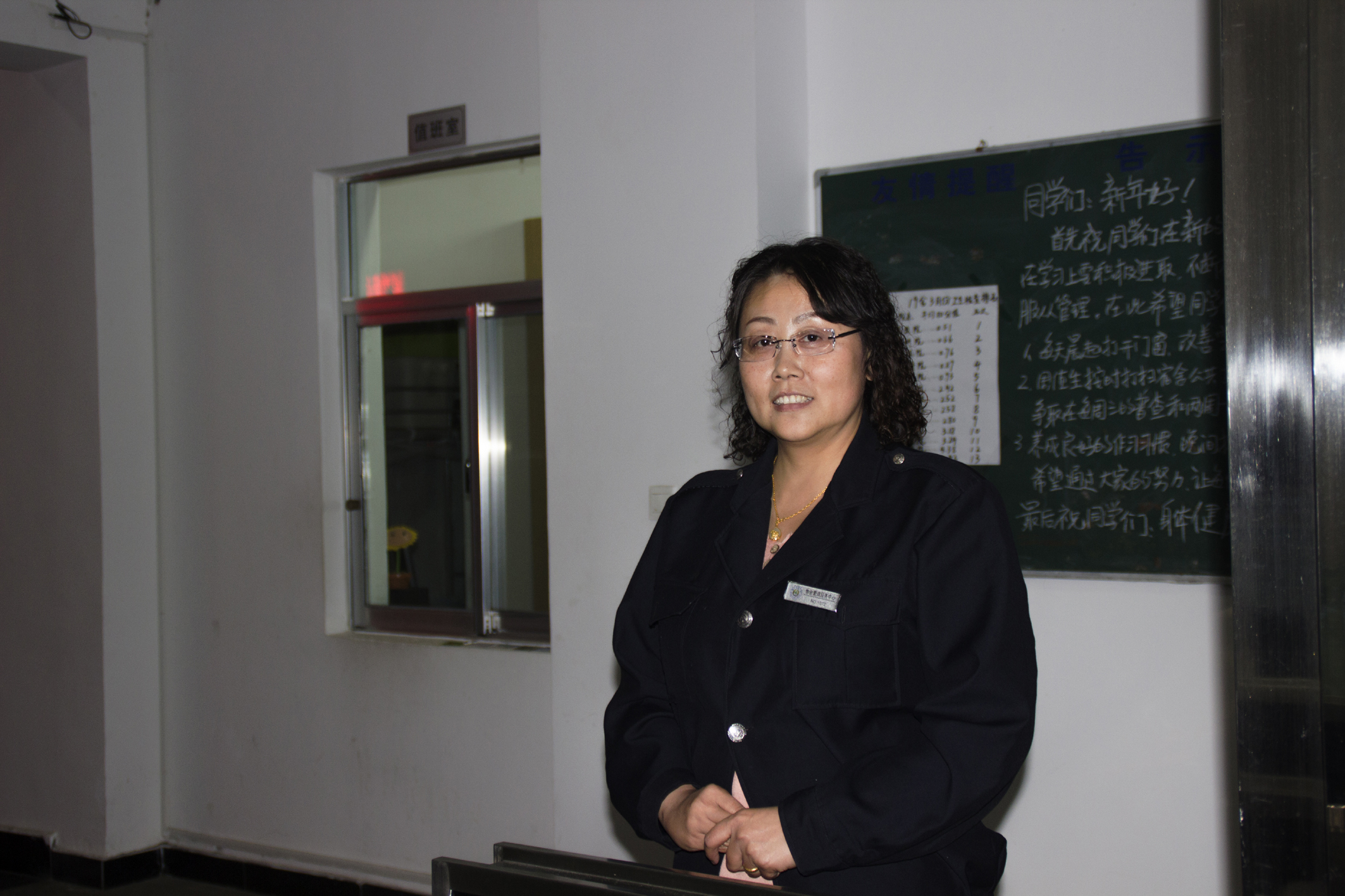 一副端正的眼镜,微卷的中长发,浅浅的酒窝,说话时总是温温柔柔地笑着,这些是我们对吕阿姨的第一印象。吕阿姨来学校工作刚一年多。作为南苑十九舍的宿舍管理员,吕阿姨每天的工作就是搞好宿舍楼内卫生,做好交接班记录,为有需要的学生服务。吕阿姨认为,作为宿管,责任心很重要,不能擅自离开岗位。除此之外,也要多和学生沟通。前段时间,她注意到楼里有个女生情绪低落。吕阿姨专门找时间和她聊天,交谈中发现女生是因为父母离异而变得有些偏激。从那以后,吕阿姨时常关心她。有一次,吕阿姨给自己女儿买了一双鞋,发现尺码大了,就拿到学校,看看她能不能穿。谈起工作,吕阿姨感到很幸福:“看着学生们这一张张青春活泼的脸,我心里特别愉快。”
