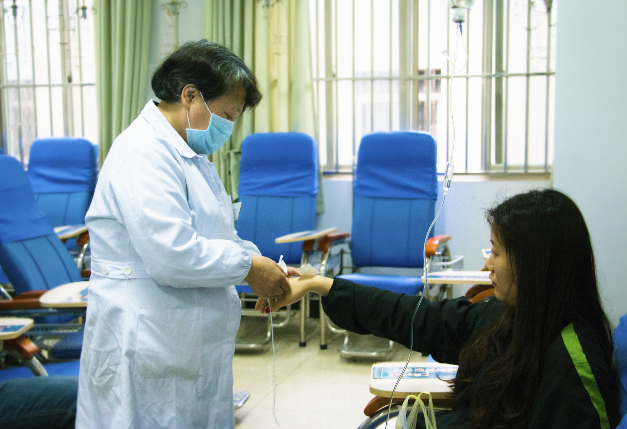 周六早上,校医院主管护师文阿姨穿上白大褂,戴好口罩,别上工作牌来到值班室开始准备药品,给输液室的病人输液。这天是她59岁的生日。文阿姨从事护理工作已经35年,来到校医院工作也有21年了。在同一个岗位工作了几十年,文阿姨仍然保持着一颗敬业与热爱之心,一上班就高度紧张,丝毫不敢懈怠。文阿姨他们这些护士常常需要值班,有时甚至要连续工作20多个小时。在她看来,医务岗位十分重要,也很神圣,不能有半点马虎。文阿姨说:“我穿上这身白大褂,就是医务人员。要抛开一切干扰,全身心投入工作。”校医院定位是保健,这对曾在三甲医院妇产科工作的文阿姨而言,施展空间受到一定限制。然而,文阿姨却依旧坚持着自己作为一名医务人员的初心,几十年如一日。“我们的愿望是常常去关怀,更多是安慰;常常去治疗,更多是治愈。”