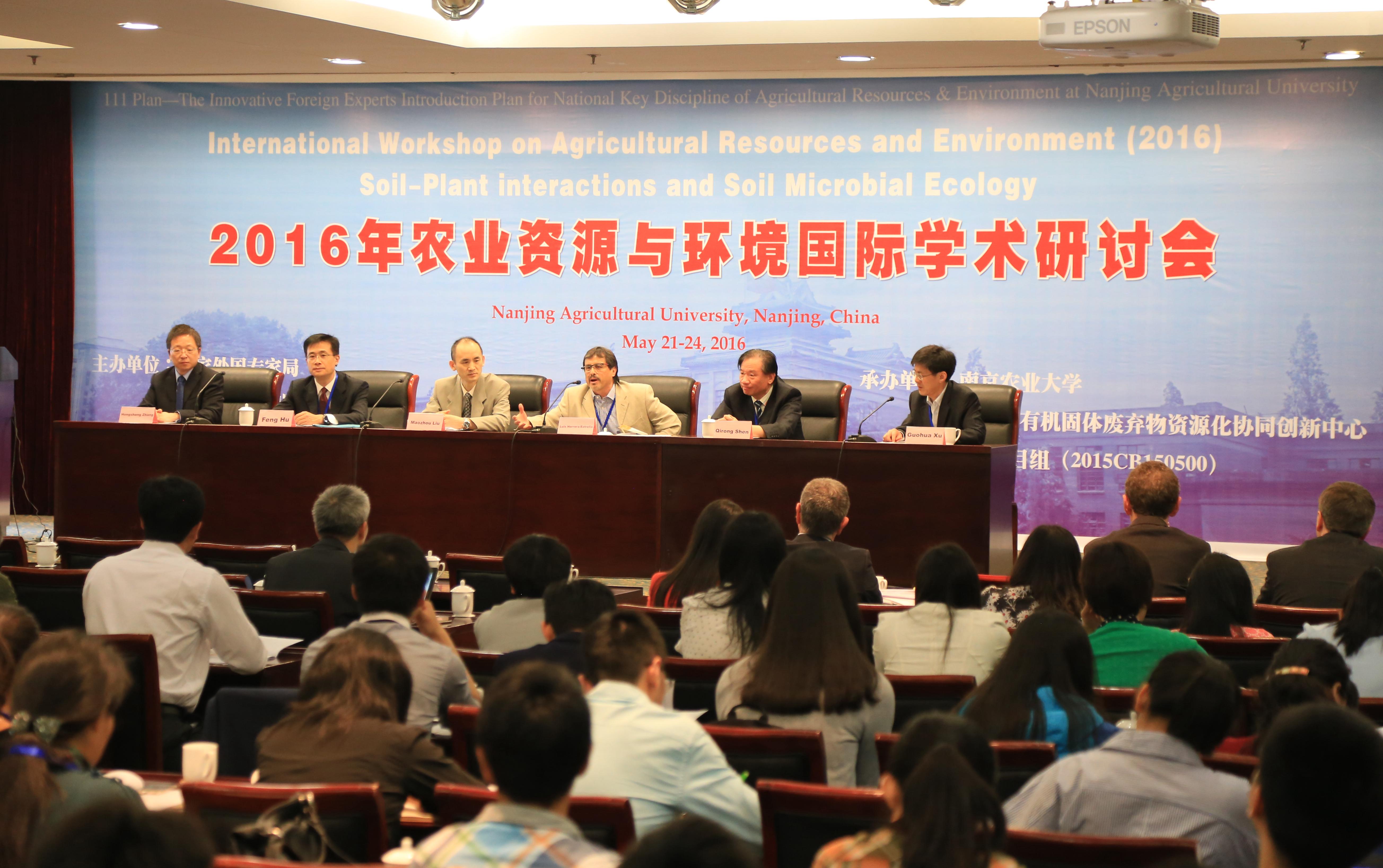 22日上午,资环学院院长徐国华教授主持开幕式,校学术委员会主任沈其荣教授致欢迎词,墨西哥植物营养生物学家美国科学院外籍院士Luis Herrera-Estrella教授在开幕式上致辞。随后,与会代表围绕“农业资源与环境:科学与技术( Agricultural Resources and Environment:Soil-Plant interactions and Soil Microbial Ecology)”这一会议主题进行了热烈的交流与学术研讨。会议期间,近30名国内外著名专家重点围绕土壤微生物生态和土壤健康,植物离子组学和养分利用效率,土壤碳氮循环与温室气体减排等作报告,此外,参会者提供了30多份研究摘要进行了学术交流。