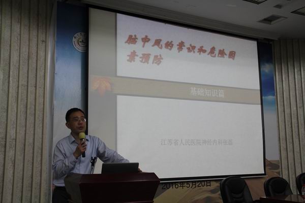 江苏省人民医院神经内科副主任医师张磊作题为“心脑血管病和失眠的常见症状以及规范治疗”的讲座。张磊用生动的动画课件向大家展示了心脑血管疾病的诊断及危险因素预防,着重从饮食和药物两个方面讲解了脑中风的规范治疗;随后,他对大家普遍关心的失眠产生的原因和解决办法进行了阐释。