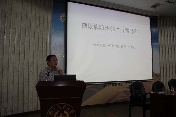 南京市第一医院内分泌科副主任医师张文礼作题为“糖尿病防治的五驾马车”的讲座。张文礼以糖尿病的基本概念和诊断标准为切入点,重点介绍了糖尿病防治的“五驾马车”——饮食、运动、药物、监测和教育,他就糖尿病患者特别关心的饮食和运动问题做了详细而全面的指导。