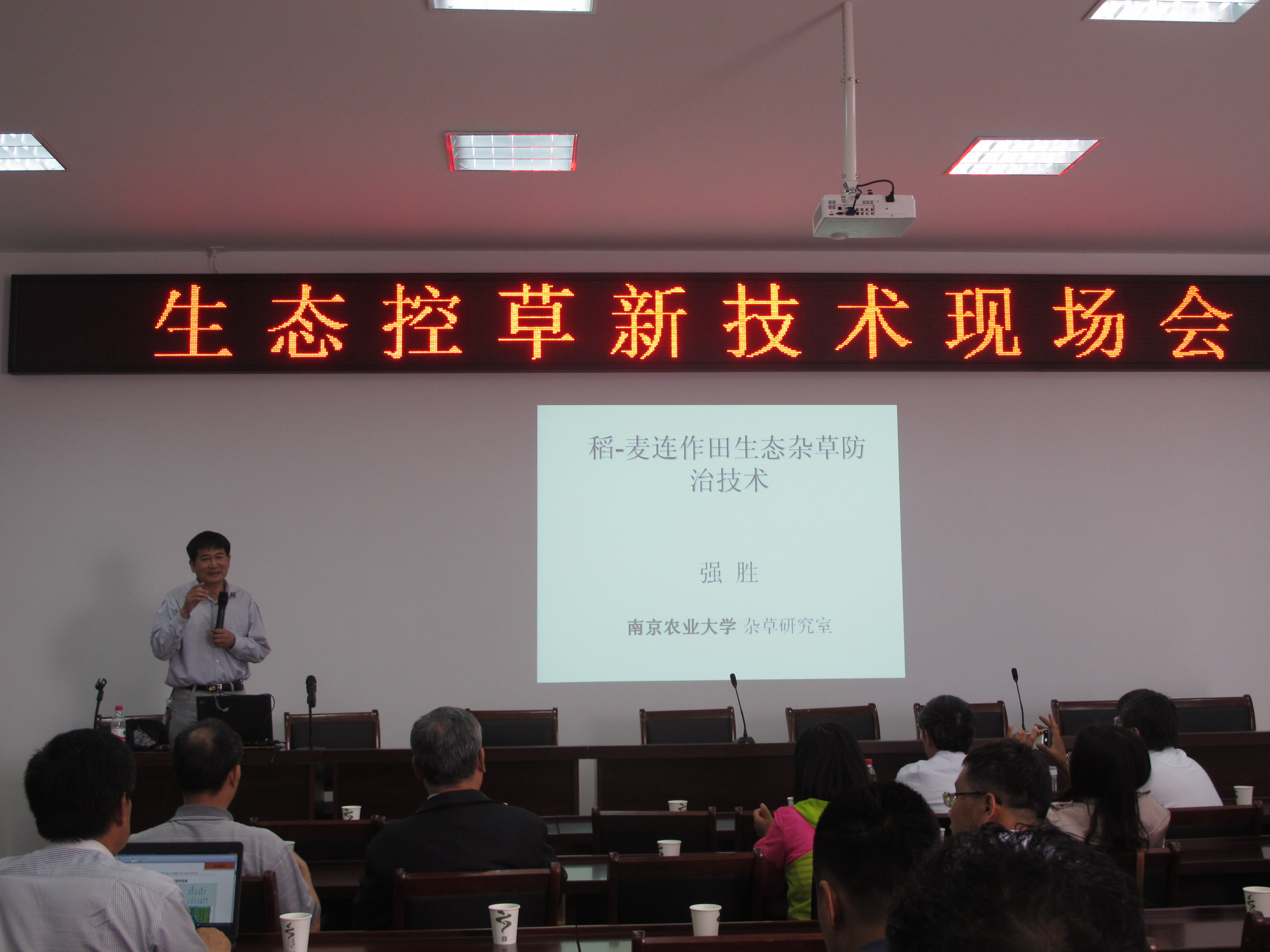 与会代表还参加了生态控草技术现场培训会。强胜教授介绍了由ios版雷竞技官网杂草研究室历经十数年开发的、江苏省农业三新工程项目支持推广的“断源”“截流”“竭库”的生态控草措施的原理和操作规程。随后,代表们参观了金坛生态控草示范现场。与会者一致认为,该技术是通过生态措施控制杂草种子,以治本为目标,实现了“降草”“减药”的可持续杂草治理理念。该技术具有操作简便,省工、省时、节本(30%)和环保等特点,可以在稻麦(油)连作区广泛推广应用。对实现国务院提出的未来农业发展确保农药零增长的战略目标以及保障我国农业种植业生产安全具有重要意义。