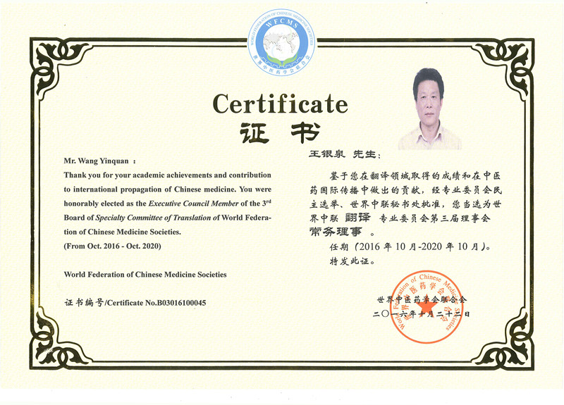 10月22日,世界中医药学会联合会(World Federation of Chinese Medicine Societies)翻译专业委员会换届大会暨第七届学术年会在湖南中医药大学开幕。来自中国、美国、英国、希腊、澳大利亚等国家和地区的近200名专家学者参加了大会。我校外国语学院王银泉教授应邀出席大会并在理事会换届选举中当选该专业委员会常务理事。王银泉同时在大会作了题为“16-18世纪在华耶稣会士中医西传活动考证”的学术报告,介绍了明末清初来华耶稣会士卜弥格、巴多明和殷弘绪通过翻译和科学考察报告等中西文化科技交流活动将中医文化传播到欧洲的历程。