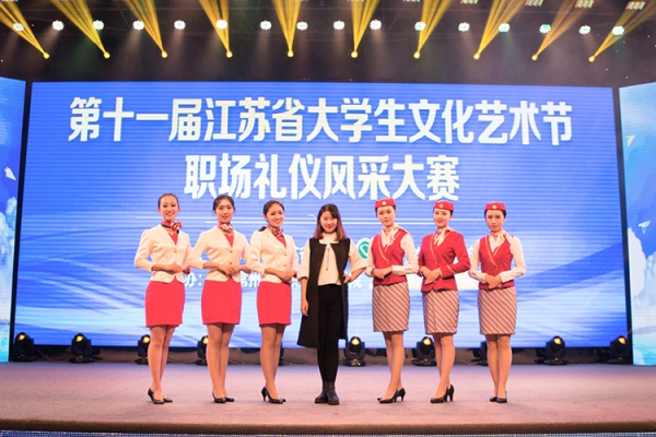10月29日,由共青团江苏省委、江苏省学生联合会举办的第十一届江苏省大学生文化艺术节职场礼仪风采大赛在常州举行。我校大学生艺术团礼仪团GRACE代表队斩获一等奖(第一名)。