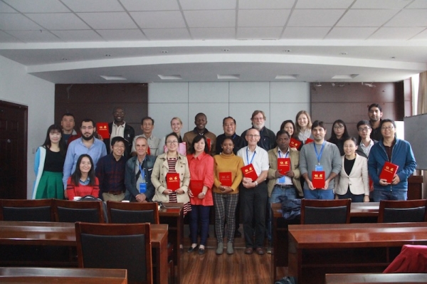 研讨会结束后,历时4天的中国‐东盟生物质炭可持续农业技术及应用国际培训班开班。我校潘根兴教授主持培训会。培训内容包括生物质炭生产与应用技术专业培训、生物质炭化技术及装备介绍与工程培训以及生物质炭生产及应用的现场和田间观摩。国外专家、我校访问学者及生物质炭与绿色农业研究骨干分别作了技术报告和讲演。期间,与会人员及培训学员实地观摩了我校位于南京市六合区的生物质绿色工程技术中心示范基地以及位于浙江金华的废弃物生物质炭化装备研发试验基地。培训结束后,潘根兴教授为培训班学员颁发结业证书。