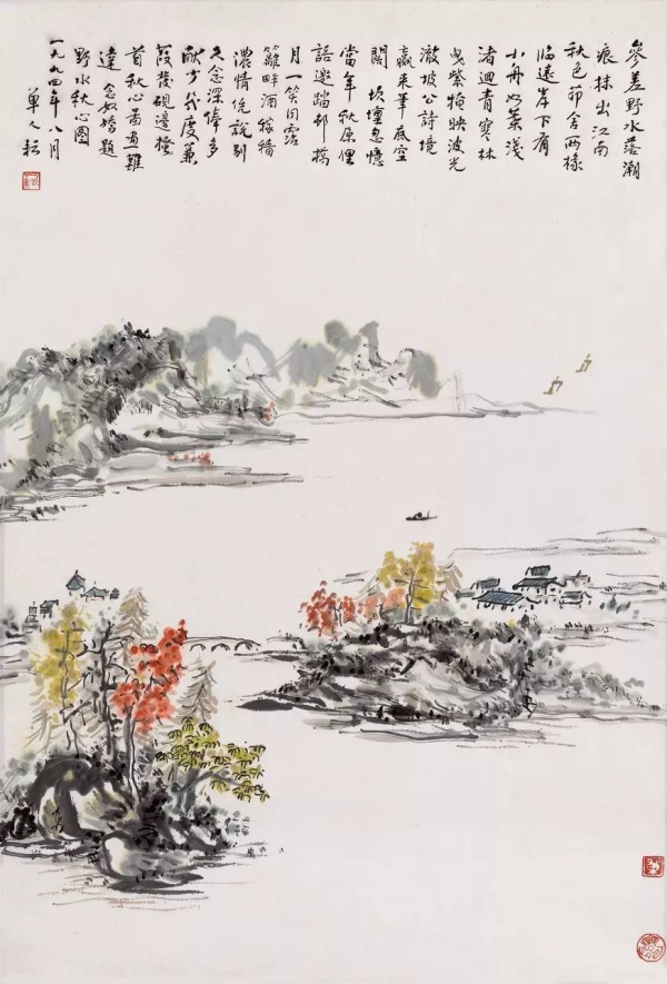 单老自幼师从林散之先生学画学诗,深受濡染。山水画师宗黄宾虹。学词于南京大学吴白匋教授,所作颇多新意。单老的诗如行云流水,书法有晋唐风韵,题画更显高雅流畅。山水画幅层次衔接自然,烟岚掩映,使人一览之下就有一种悠远、空灵,远离尘嚣之感。