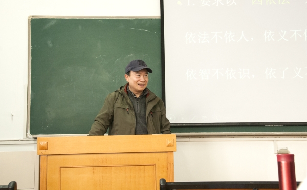 老师总是戴着一顶水洗得有点发白的鸭舌帽,穿着简单的上衣和牛仔裤。上课时打开一页PPT便能滔滔不绝地讲许多典故、公案,一边着急地唠叨着“不能跟你们说太多,不然我课上不完”,一边又忍不住一点一点延展开把许多他认为应该是常识的“新知识”告诉我们。他急切地想要在有限的时间内将传统文化的精髓传递给学生,他希望正在求学的我们能够认识到传统文化的美好和精彩。