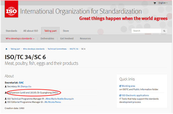 国际标准化组织肉禽鱼蛋及其制品分委员会网页