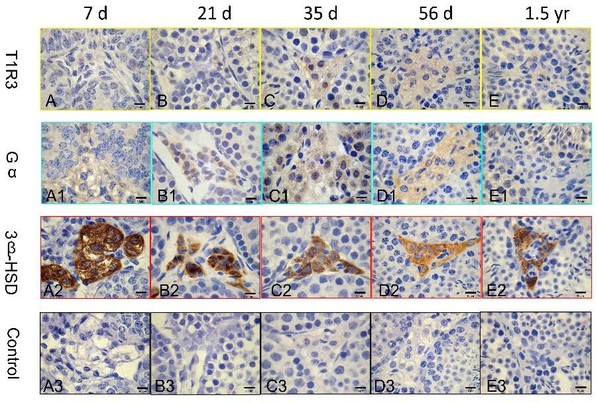 出生后小鼠睾丸发育过程中间质细胞T1R3与Ga蛋白的动态表达