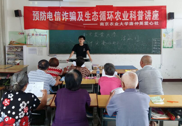 在ios版雷竞技官网农学院杨海水教授的指导下,志愿者准备了“江苏生态循环农业模式与技术”方面的农业知识,也由学生自行准备了防电信诈骗的相关知识,并在大东学校开展了相关讲座,为村民们分发了农业科普手册,送科技下乡。