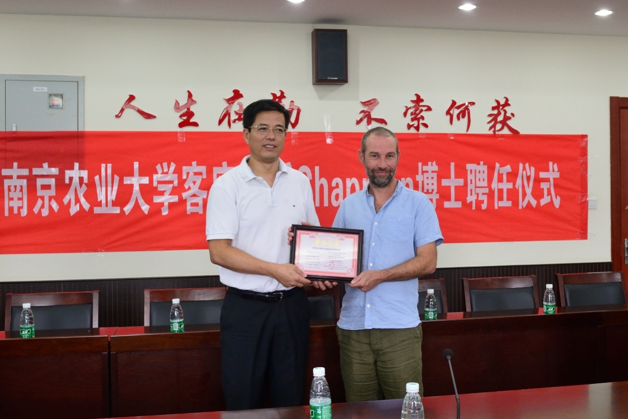 9月19日上午,我校聘请英国埃克塞特大学Jason Chapman博士为客座教授。聘任仪式由植保学院党委书记吴益东教授主持,植保学院院长王源超教授向其颁发了聘任证书。