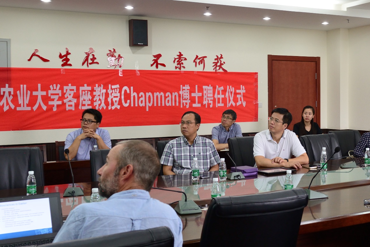 吴益东首先对Chapman博士的到来表示欢迎。他介绍道,Chapman博士长期从事迁飞昆虫学的研究,研究成果丰硕,多次发表高水平学术论文,并与我校胡高教授有着长期良好合作。2016年12月,二人合作在国际顶尖刊物Science在线出版题为 “Mass seasonal bioflows of high-flying insect migrants” 的研究成果(我校胡高教授为第一作者和第一通讯作者, Chapman博士为共同通讯作者)。吴益东表示,此次聘请Chapman博士为客座教授将推动我校昆虫科学研究,为今后学科交流,人才培养奠定良好的基础。