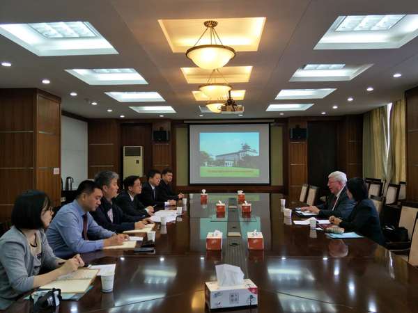 Howard Evans博士和薛亚萍女士介绍了加州波莫纳州立理工大学的基本情况以及与中国高校的交流合作情况。随后,双方就拟开展的学生合作项目进行了商讨。