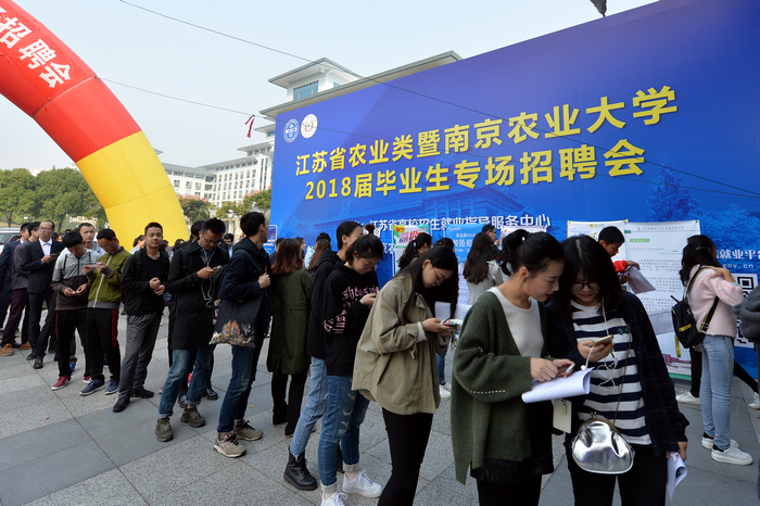 为了办好本次专场招聘会,我校联合江苏省高校招生就业指导服务中心共同优选参会企业。为提升此次招聘会信息化管理与服务水平,本校学生通过“南农就业”app报名扫码入场,外校学生刷身份证入场,这为我校实时监控并维持会场秩序提供了数据支持,有助于学校开展后续数据分析。