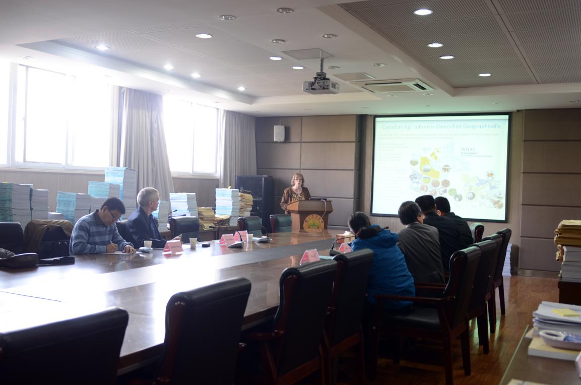 8日上午,Della Johnston博士介绍了加拿大农业与农业食品部 London和Harrow两个研究所的科研、推广、留学生培养和国际交流情况;国际合作与交流处副处长陈杰介绍了我校概况和国际合作交流情况,双方并就科研合作与高层次人才培养进行了交流。来访专家还参观了园艺学院和植保学院的实验室,并与相关教授和研究生进行了交流。