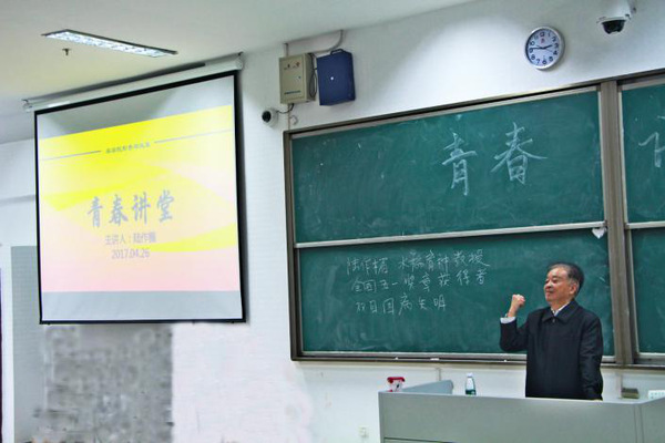 一节没有PPT和讲稿的课堂,一位双目失明的老教授,却以青春的名义诠释了他对青年人的无限关怀。“春蚕到死丝方尽,蜡炬成灰泪始干”,这位年近八十的老师以实际行动勤勤恳恳地做着“教书匠”,虽早已退休闲居,却依然乐此不疲地关心着下一代青年人的成长与发展。当我们发出邀请,希望陆老师为我们的大学生上一次形式与政策课时,他毫不犹豫地答应下来,他等待着每一个机会,每一个关心下一代的机会,坐在沙发上的他,早已失明的双眼中分明闪过一丝光亮。
