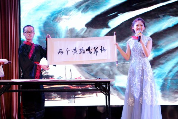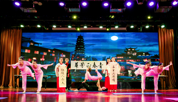 《无问西东》片段中展现了家国情与母子情的抉择,演员们用动情的表演演绎了为大国舍小家的感人故事,谱写了一曲荡气回肠的赞歌。瑜伽协会伴着曼妙的歌声带来的《明月几时有》,自如地展示了力与美的完美结合。融智书画协会成员现场落墨,挥斥方遒间一幅青春正芳华,彰显新青年对未来的激情展望。