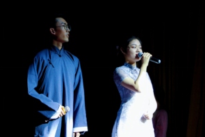 在《建国大业》片段中,闻一多先生面对反动势力的压迫威胁,舍生忘死,为当代青年树立了榜样。配音者用声情并茂的表演展现了《霍元甲》在家国命运跌宕起伏之时,无数仁人志士保家卫国的决心,激起在场同学心中激荡的爱国情怀。武术协会的《精武忠魂》展示了习武之人的飒爽英姿,四面战旗和双节棍舞得虎虎生风。歌舞表演《发光时代》用饱含深情的歌声,唱出了青年学生的热情与豪迈。晚会上,学院还对在过去一年中表现出色的校院优秀共青团员、团干予以表彰,并对获得“五四红旗”团委的管理工程系进行颁奖。