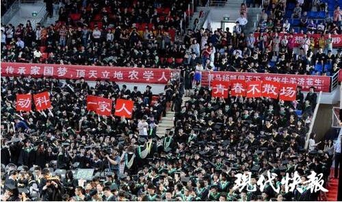 与其他高校不同,南农的学士服领巾上有一抹绿色,那是代表农学、植物保护学、园艺学、环境资源与保护学等学科的标志。就像他们大学四年里,曾去学校试验田播过种、除过草,在江浦农场插过秧、收过麦子一样,这是属于南农学子独一无二的记忆。 大不了回去种地 并不是学生们的玩笑话,而是一代又一代农学毕业生们,践行 诚朴勤仁 的校训,投身科技兴农、坚守田间地头、甘于奉献的豪迈精神。